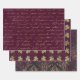 Burgundy profonde - papier d'emballage motif rouge vin et or chatoyant dans trois styles différents sur le thème du vin, y compris le damas grunge en détresse, une vigne, et l'écriture française à l'ancienne.