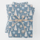 A cozy mid-century inspired holiday pattern featuring tall geometric trees and shimmering ornaments in shades of soft blue, beige, and ivory. The subtle star details give it a gentle sparkle that feels both nostalgic and modern. This look works beautifully for wrapping gifts in a calm, wintry palette that fits minimalist, Scandinavian, or vintage Christmas themes.