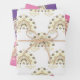 Papier d'emballage décoratif avec motifs d'empreintes de pattes de chien, arc-en-ciel et coeurs avec effet sépia appliqué à l'image. Arrière - plans blancs, roses et violets. Idée cadeau pour les amoureux de les chiens et leurs animaux de compagnie.