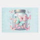 Wrapping paper sheets with a magical image featuring pastel colored butterflies in a jar.