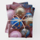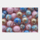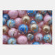 This pretty wrapping paper is covered in a pink, blue, and gold marble design.
