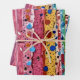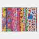 This wrapping paper is covered with an abstract design filled with stripes, polka-dots, and sparkles.