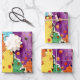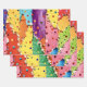 This wrapping paper comes in a colorful abstract design filled with polka-dots and tiny sparkles.