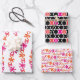 One sheet of the XOXO Valentine HAPPY, and two featuring the Monkey Business "Barrel of Monkey, Robot, Sock Monkey monkeys. All share the magenta and orange color palette.