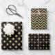Black And Gold stars, spotty, zigzag motif papier d'emballage feuilles de Ricaso