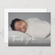 Ce petit budget Convivial Design Baptême photo bébé carte de remerciements dispose d'une belle photo horizontale fond de saignement et lettré main merci script et texte modificatif minimal. Cliquez sur le bouton Modifier pour customiser cette conception.