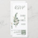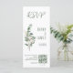 Cette carte RSVP tendance aux couleurs vertes présente une couleur verte classique et une typographie moderne mélangée à une calligraphie élégante. La carte a un code QR que vous pouvez faire en ajoutant simplement votre adresse de site Web mariage; vous pouvez l'utiliser pour votre site Web mariage ou votre liste de cadeaux mariages.