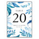 Cartes de numéro de table botanique élégantes avec votre numéro de table, noms et date mariage entourées d'aquarelle feuillage dans les tons indigo et bleu turquoise. Les numéros de table élégants sont conçus pour coordonner avec notre collection de mariages Feuille Indigo. Ajoutez chaque carte de numéro de table à votre panier individuellement.
