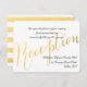 Élégant feuilletage doré | Cartons d'invitation de réception de mariage - Disposition horizontale. Conception de Elke Clarke©. D'autres styles et couleurs sont disponibles dans notre boutique www.zazzle.com/monogramgallery. Un script d'écriture manuscrit simple avec le mot "réception" orne cette carte d'insertion de réception de mariage classique mais moderne. Le texte est entièrement personnalisable. Le motif rayé or et blanc au dos peut être supprimé ou une couleur ou un motif différent peut être demandé. Fourni avec une enveloppe blanche vierge. La feuille d'or est un effet de photo imprimé.