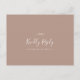 Cette carte postale RSVP au choix neutre en feuille minimale est parfaite pour un mariage boho. Le design se compose d'une simple silhouette de feuille de verdure dans un ton naturel terreux avec un style bohème minimaliste du désert. Cette carte postale de réponse mariage demande à la clientèle quel repas elle souhaite à la réception.