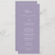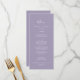 Cette carte de menu de mariage de lavande minimale en feuille est parfaite pour un mariage boho. Le design se compose d'une simple silhouette de feuilles verdoyantes en violet lilas pastel avec un style bohème minimaliste de jardin. Ce menu peut être utilisé pour une réception de mariage, un dîner de répétition ou tout événement.