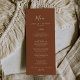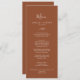 Cette carte de menu mariage en terre cuite minimale est parfaite pour un mariage boho. Le design se compose d'une simple silhouette de feuille de verdure orangée brûlée et minimaliste de style bohème désert. Ce menu peut être utilisé pour une réception de mariage, un dîner de répétition ou tout événement.