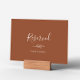 Ce signe réservé en terre cuite minimale est parfait pour un mariage de saumons. La carte est recto-verso (tirages sur les deux côtés). Le design se compose d'une simple silhouette de feuille de verdure orangée brûlée et minimaliste de style bohème désert. Utilisez ces cartes pour réserver des chaises ou des tables lors de votre cérémonie de mariage, de votre réception ou de tout événement.