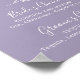 Ce panneau d'affiche de signature de lavande en feuille minimale est parfait pour un mariage boho. Le design se compose d'une simple silhouette de feuilles verdoyantes en violet lilas pastel avec un style bohème minimaliste de jardin.