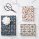 Papier d'emballage Halloween avec 3 motifs Halloween différents créés avec des motifs classiques d'Halloween tels que candélabre, bonbons et jack-o-lanterns.