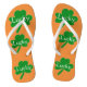 Lucky est écrit en texte blanc sur les shamrocks verts. Festive Ireland couleurs drapeau en vert, blanc, orange pour l'Irish et Saint Patrick's Day ou à porter à tout moment. Fun, Flip Flops unique parfait pour les loisirs d'été, la plage et les voyages de vacances pour n'importe qui. Montré avec une sangle blanche mince et une semelle blanche. Oeuvre graphique originale de TamiraZDesigns.