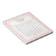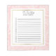 Bloc-notes personnalisé "à faire" avec feuilles blancs sur rose doux et un arrière - plan blanc avec garniture or. Le texte, la police, la taille de police, la couleur et le placement sont entièrement personnalisables.