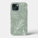 Un design Abstrait de motif feuille blanc sur un étui de téléphone arrière - plan vert sage.