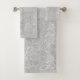 Des feuilles blancs dessinés à la main sont éparpillés sur un arrière - plan gris argenté. Serviette Feuille tombée est un bel accent pour votre salle de bain. Recherchez d'autres décors, cadeaux et accessoires de maison dans la Collection Feuille de Fallen.