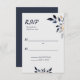 Feuilles bleus avec mariage or RSVP