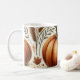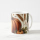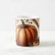 Une tasse motif citrouille avec un design d'automne aquarelle avec des feuilles en chute. Parfait pour les amateurs de latte d'épices citrouilles ou comme une jolie décoration saisonnière.