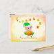 De belles feuilles de chute colorées et un elfe mignon tenant une carte postale de voeux de Thanksgiving citrouille. Tout le texte peut être personnalisé.