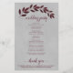 Ces programmes de mariage sont élégants et de bon goût, tout en étant toujours à l'aise avec le budget. L'aquarelle peinte à la main est ornée d'un brin de feuilles bordeaux ou marrons sur un arrière - plan gris légèrement marbré. La typographie présente une calligraphie de script dentée, et il y a de la place pour des détails sur la cérémonie, la fête de la mariée, et un bref merci.