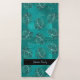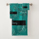 Turquoise palmier feuille tropical Hawaiian motif avec aloha script sur un arrière - plan vert océanique dynamique faisant un élégant élégant ensemble de serviettes de bain personnalisé tendance. +++++++++++++ Peut être un cadeau inspiré pour l'anniversaire, les jeunes mariés, la famille, ou un anniversaire de couple ou pour un séjour de vacances chalet de plage chauffe-maison. Vous pouvez facilement le customiser avec un nom de signature de script.