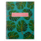 Carnet vintage Monstera palmier feuille avec étiquette rose corail. Beau design tropical avec modèle de typographie moderne. Livre de journal unique pour les expériences de voyage, notes de journal, planification, recettes et plus encore. Idée cadeau d'anniversaire cool pour les amis et la famille. Ajoutez votre propre citation inspirante et des lettres personnalisées de nom ou de monogramme. Impression florale exotique avec couleur arrière - plan personnalisable. Aussi agréable comme planificateur pour couple mariage, mariée, demoiselle d'honneur etc.