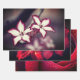 Envelopper des feuilles de papier, ensemble de trois avec des images d'orchidées et une image macro d'un rose.