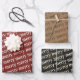 Joyeux Joyeux Joyeux écrit en blanc sur le enveloppement de Noël en trois couleurs chaudes de Noël.
