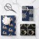 Papier de vacances créé à partir d'images de motifs artisanaux originaux avec huîtres naturelles des plages de l'artiste. Un drap chacune d'une douce délicate scène de nativité avec un arrière - plan bleu minuit; des couronnes de sainte et de vigne avec un motif d'huître croisée d'ange; et un design d'art moderne huître avec magnolias argent/acier sur un arrière - plan bleu.