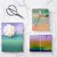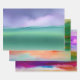 Beau papier d'emballage conçu à l'aquarelle gratuit. Ensemble de trois feuilles avec de jolis violets, des teals, des verts, des oranges et des jaunes. Faites briller et attraper vos vacances et occasions spéciales dès aujourd'hui!