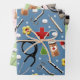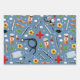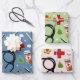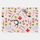 Emballage-cadeau créatif sur le thème médical pour le médecin avec des fournitures de santé motif sur des arrière - plans bleus, verts et roses.