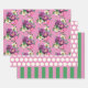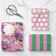 Beau bouquet fleuri violet, rose, crème et vert avec rayures et pois correspondants.