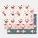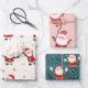 De mignons petits Santas défilent à travers ces feuilles de papier d'emballage de Noël. Ce sont des gens heureux, tous habillés dans leurs tenues traditionnelles du Père Noël rouge et avec des barbes blanches qui coulent, nous saluant joyeusement dans la neige hivernale. Ce sont des personnages amusants de dessins animés rétro. Une feuille montre un arrière - plan blanc enneigé, une autre est un beau rose, et la troisième arrière - plan est un bleu-vert saisonnier avec un peu de pinèdes. Chaque motif est un peu différent, mais nous pensons que les trois feuilles forment un joli groupe fantaisiste.