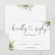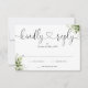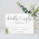 Une simple carte de réponse RSVP au cœur de script noir et blanc avec des feuilles de verdure élégantes, avec vos coordonnées dans une typographie chic. Conçue par Thisisnotme©