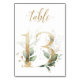 Belle carte de numéro de table avec un motif botanique - une illustration aquarelle de feuilles vertes et dorées. Table 13. Veuillez vérifier tous les numéros disponibles