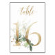 Belle carte de numéro de table avec un motif botanique - une illustration aquarelle de feuilles vertes et dorées. Table 16. Veuillez vérifier tous les numéros disponibles