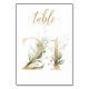 Belle carte de numéro de table avec un motif botanique - une illustration aquarelle de feuilles vertes et dorées. Table 21. Veuillez vérifier tous les numéros disponibles