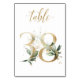 Belle carte de numéro de table avec un motif botanique - une illustration aquarelle de feuilles vertes et dorées. Table 38. Veuillez vérifier tous les numéros disponibles