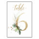 Belle carte de numéro de table avec un motif botanique - une illustration aquarelle de feuilles vertes et dorées. Table 6. Veuillez vérifier tous les numéros disponibles