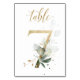 Belle carte de numéro de table avec un motif botanique - une illustration aquarelle de feuilles vertes et dorées. Table 7. Veuillez vérifier tous les numéros disponibles