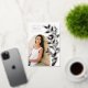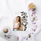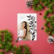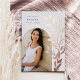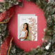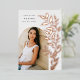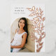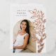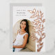 Le faire-part de graduation chic et moderne comprend une seule photo verticale/portrait en forme d'arche, avec des vignes d'escalade de feuilles botaniques roses en feuille d'or le long du côté droit. Personnalisez avec le nom de votre diplômé, l'année de cours et l'école et ajoutez un message personnel à l'arrière, ainsi qu'une photo supplémentaire.