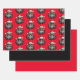 Feuilles de papier d'enveloppement de 19 po x 29 po, Matte 19 po x 29 po, Crâne Père Noël, Rouge, Noir, 3pc. Lot