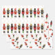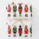 Le papier d'emballage de Noël de Noël de Black Nutcracker Soldier Stance Enveloppes en blanc Ce papier d'emballage de Noël de Noël de Noël présente trois créations de noisettes noires. Les couleurs rouge, vert, or et noir sont parfaites pour la saison des fêtes pour envelopper cadeaux et cadeaux. Il donne le ton d'un décor de vacances parfait.