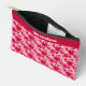 Petite pochette d'accessoires en feuilles d'érable rouge et blanc sur un arrière - plan rose. Vient aussi en grand. Arrière - plan de charbon de bois est également disponible. Veuillez aller ici pour les autres options : https://www.zazzle.com/collections/canadiana_clothing_and_accessories_cosmetic_bags-119353441338269788