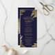 Simple, moderne et élégant faux or design avec motif en forme de feuille dessinée sur bleu marine, cartes de programme de mariage. Ce design classique et sophistiqué est parfait pour le couple marié branché et élégant. Personnalisez avec votre propre message sur l'avant ainsi qu'avec un premier monogramme customisé sur l'arrière. Toute la conception d'impression photo.