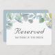 Feuilles élégantes. Carte de table réservée pour mariage. Branches d'olivier gris chic aquarelle moderne aérienne avec feuilles cyan clair. Partie d'une collection de mariage. Consultez ma boutique pour voir la suite de mariage complète pour ce design !