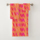 Serviette dans un design moderne du milieu du siècle moderne de feuilles abstraits dans les tons rose fushia, corail et or tendre, accentué de blanc, sur un arrière - plan corallien orange